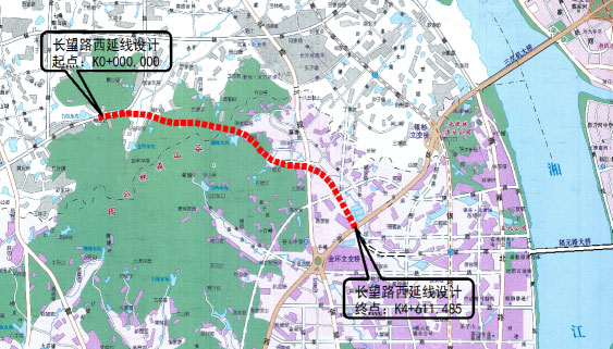 長(zhǎng)望路西延線位于湘江新區(qū)范圍內(nèi),路線呈東西走向。道路西接黃金大道,往東沿谷山森林公園北側(cè)山體埡口,穿過(guò)龍湖湘風(fēng)原著,往東接現(xiàn)狀金星北路,再向東南連接現(xiàn)狀西二環(huán),道路全長(zhǎng)4.611KM,并對(duì)長(zhǎng)望路(西二環(huán)-觀沙路)段進(jìn)行了改擴(kuò)建設(shè)計(jì),長(zhǎng)度0.611KM,金星路、黃金大道立交范圍內(nèi)的主線及輔道進(jìn)行改造。本標(biāo)段范圍為K0+000-K1+520。其中包括跨線一座、下穿式矩形框架橋一座、地下人行通道一座,線路設(shè)計(jì)為城市主干路、設(shè)計(jì)車速60km/h。
