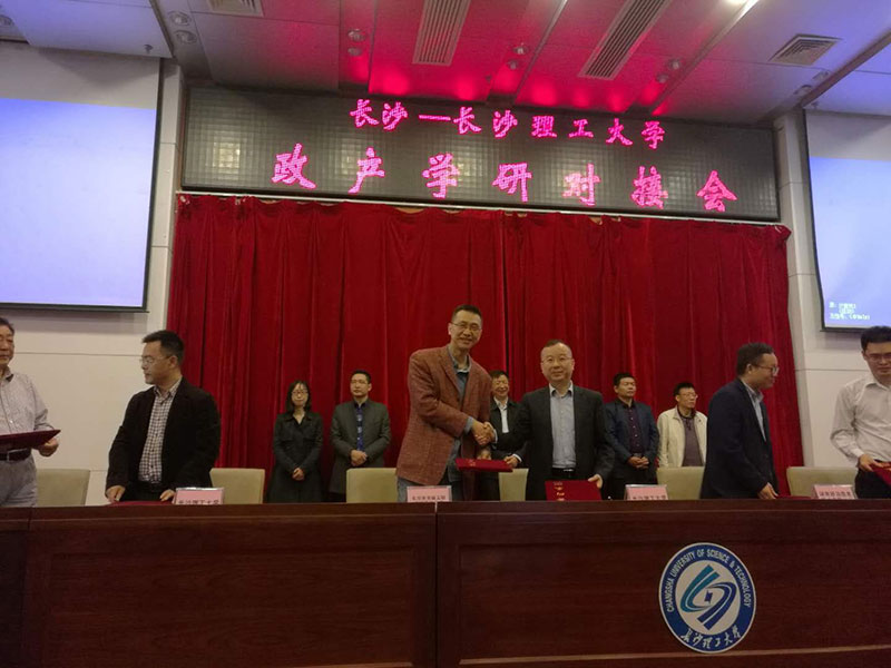 為進(jìn)一步加強(qiáng)長沙與高校的科技合作交流,加快高校的科技成果在長轉(zhuǎn)化,10月13日上午,“長沙-長沙理工大學(xué)政產(chǎn)學(xué)研對接活動”在長沙理工大學(xué)云塘校區(qū)舉行。圖為我公司與長沙理工大學(xué)簽署對接協(xié)議。